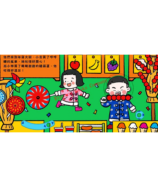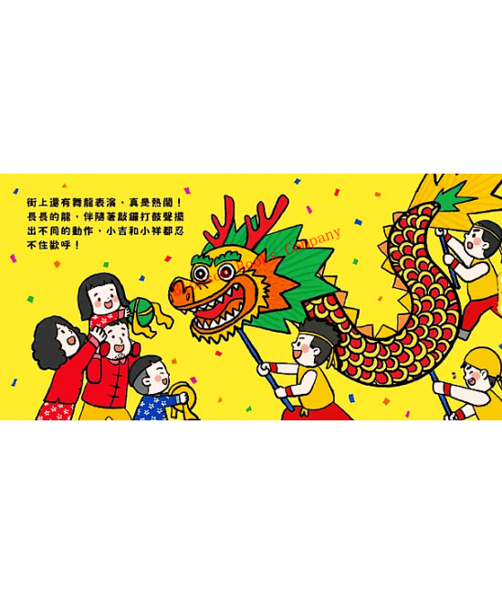 小吉和小祥這個年過得多采多姿,他們去放鞭炮、看舞龍、迎財神、猜燈謎,